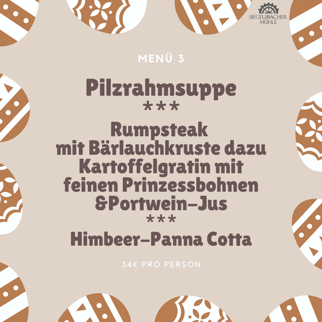 Wir haben drei super leckere Menüs für euch erstellt! Am Ostersonntag und Ostermontag werden wir für euch kochen und ihr könnt euer Wunsch-Menü dann bei uns abholen!